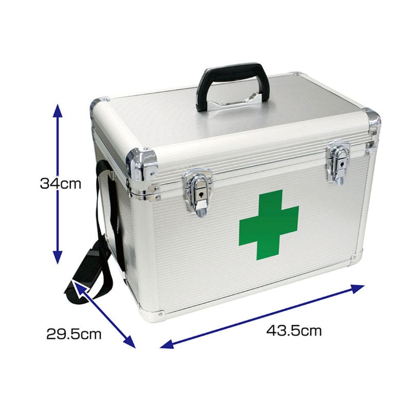 ■包装サイズ/548×350×426mm(配送用段ボール) ■商品内容/アルミケース(435×295×340mm)(材:アルミ)、三角巾×20、伸縮包帯(S×5、M×5、L×5)、滅菌ガーゼ(S:15枚、M:12枚、L:10枚)×2、モイスキンパッド(4枚)、サージカルテープ×3、消毒液×3、消毒ウェットティッシュ(10枚)×10、救急絆創膏(M:100枚)×3、防水パッド(S:6枚)×3、(M:5枚)×3、(L:4枚)×2、眼帯セット×2、ポリグローブ(L:100枚)、マスク(ふつう:30枚、こども用:20枚)、防寒用アルミシート×5、冷却シート(16枚)×2、万能ばさみ×2、刺抜きピンセット×2、電子体温計、ワンタッチ駆血帯×5、ソフトシーネ(5S×2、4S×2、3S×2)、一方弁マスク×2、救急ハンドブック ■重量/9.5kg ■生産国/日本 ■医療機器認証番号/272X00110000005(滅菌ガーゼ)、2782X00110000008(救急絆創膏)、1382X0002300000117(防水パッド)、225AK8ZX00141000(電子体温計)、2382X10001000040(ソフトシーネ)、1382X00023000142(モイスキンパッド) ■00274031