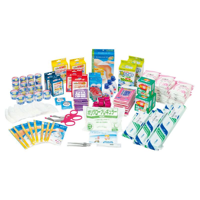 ●避難場所での救急手当てで必要となるアイテムを1つのボックスに。 ●防寒用アルミシートや冷却シートなど、体温調整を助けるアイテム入り。 ●応急処置時に役立つ、救急ハンドブック入り。 ※セット内容は予告なく変更になる場合があります。